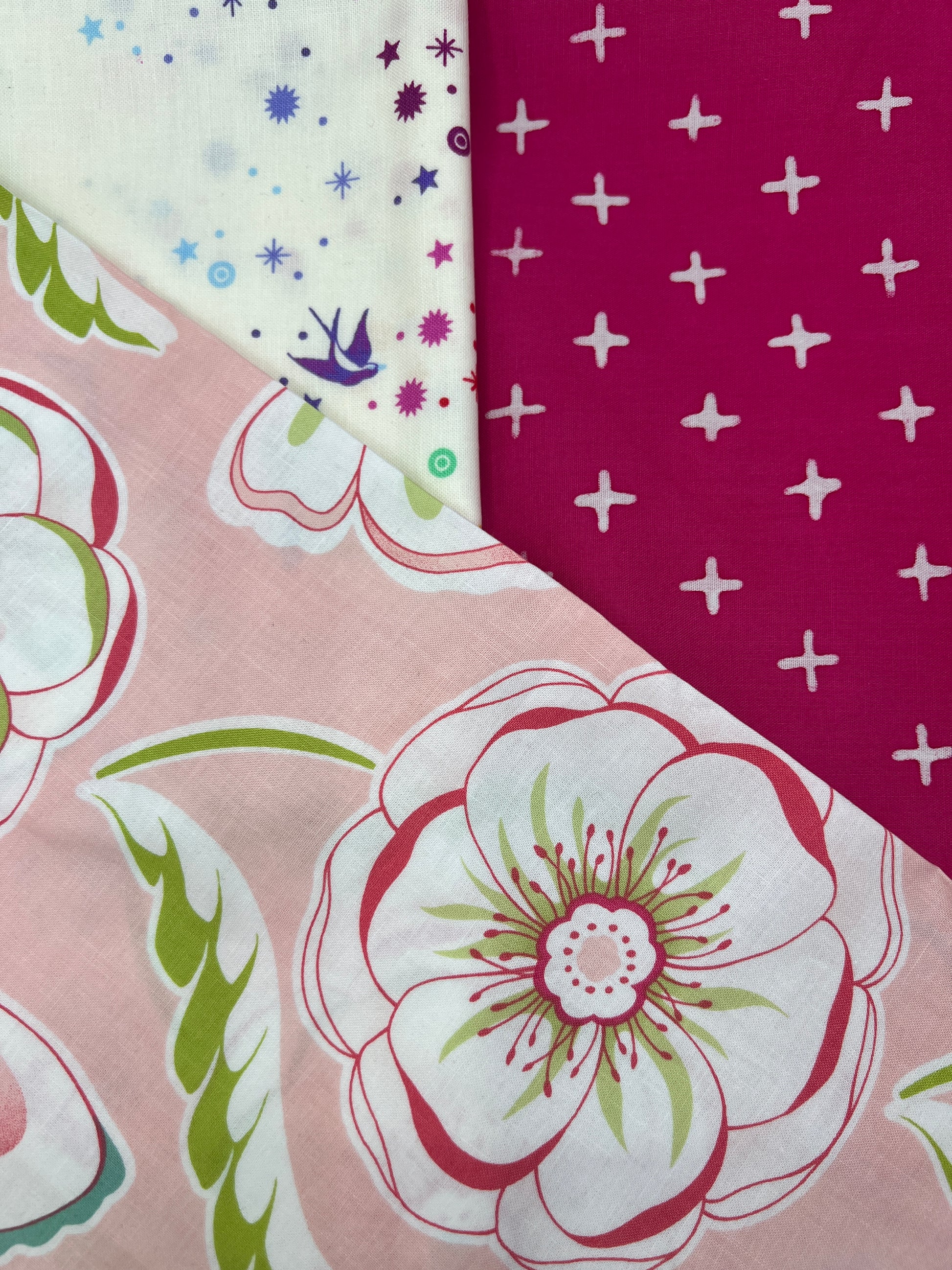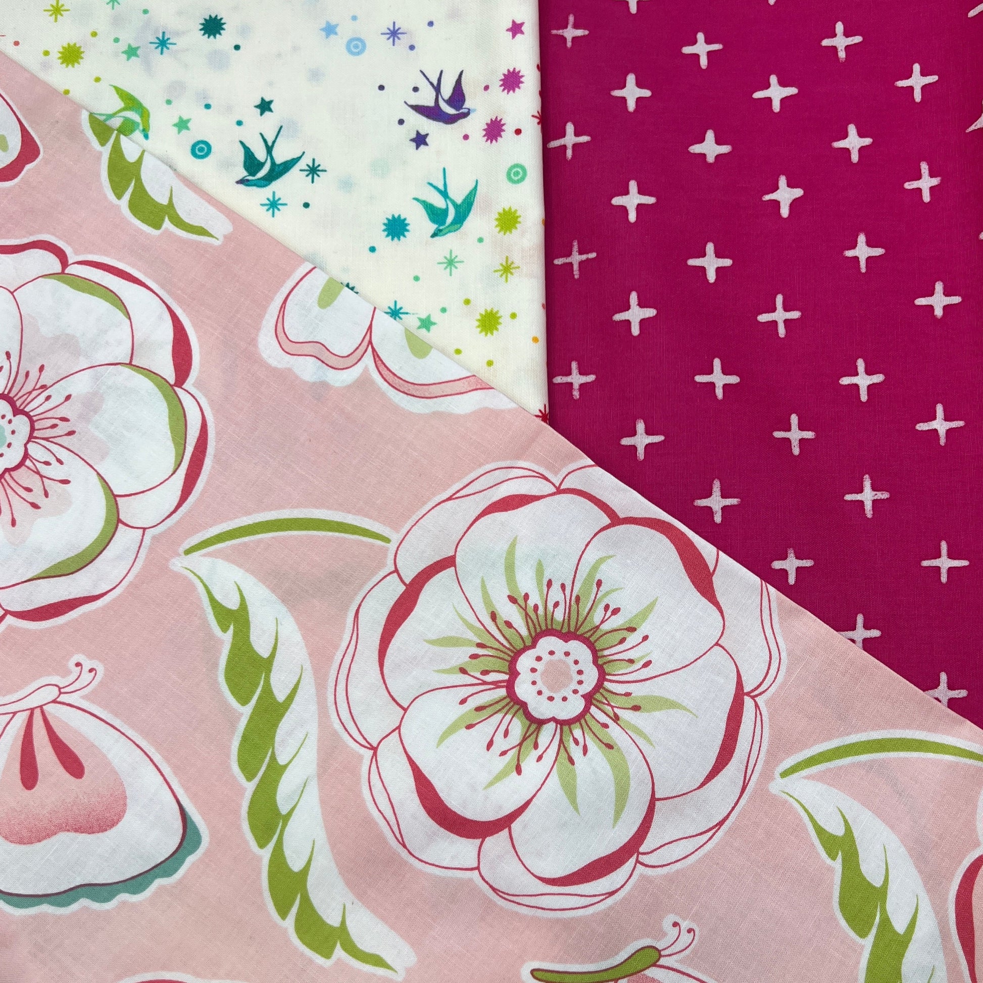 3 Piece - Fat Quarter Bundle / Floral w/ Pink Print and Tula Pink Fairy Dust Print