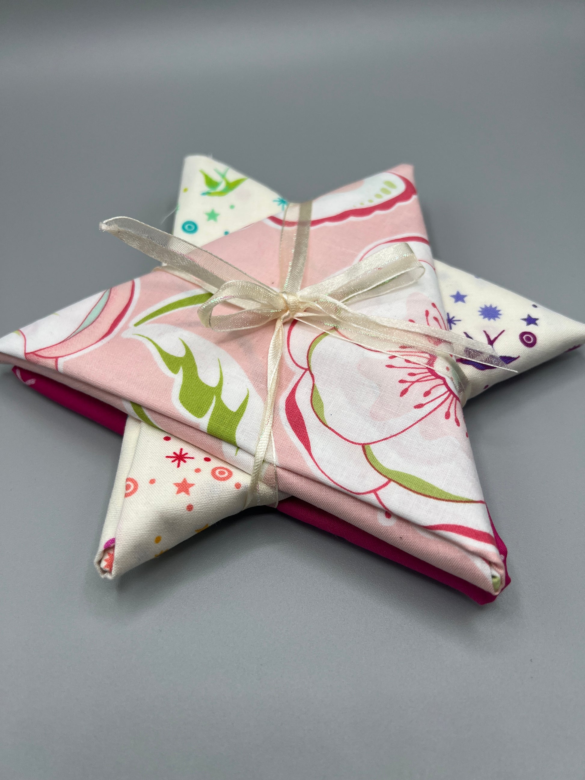 3 Piece - Fat Quarter Bundle / Floral w/ Pink Print and Tula Pink Fairy Dust Print 2 Low stock