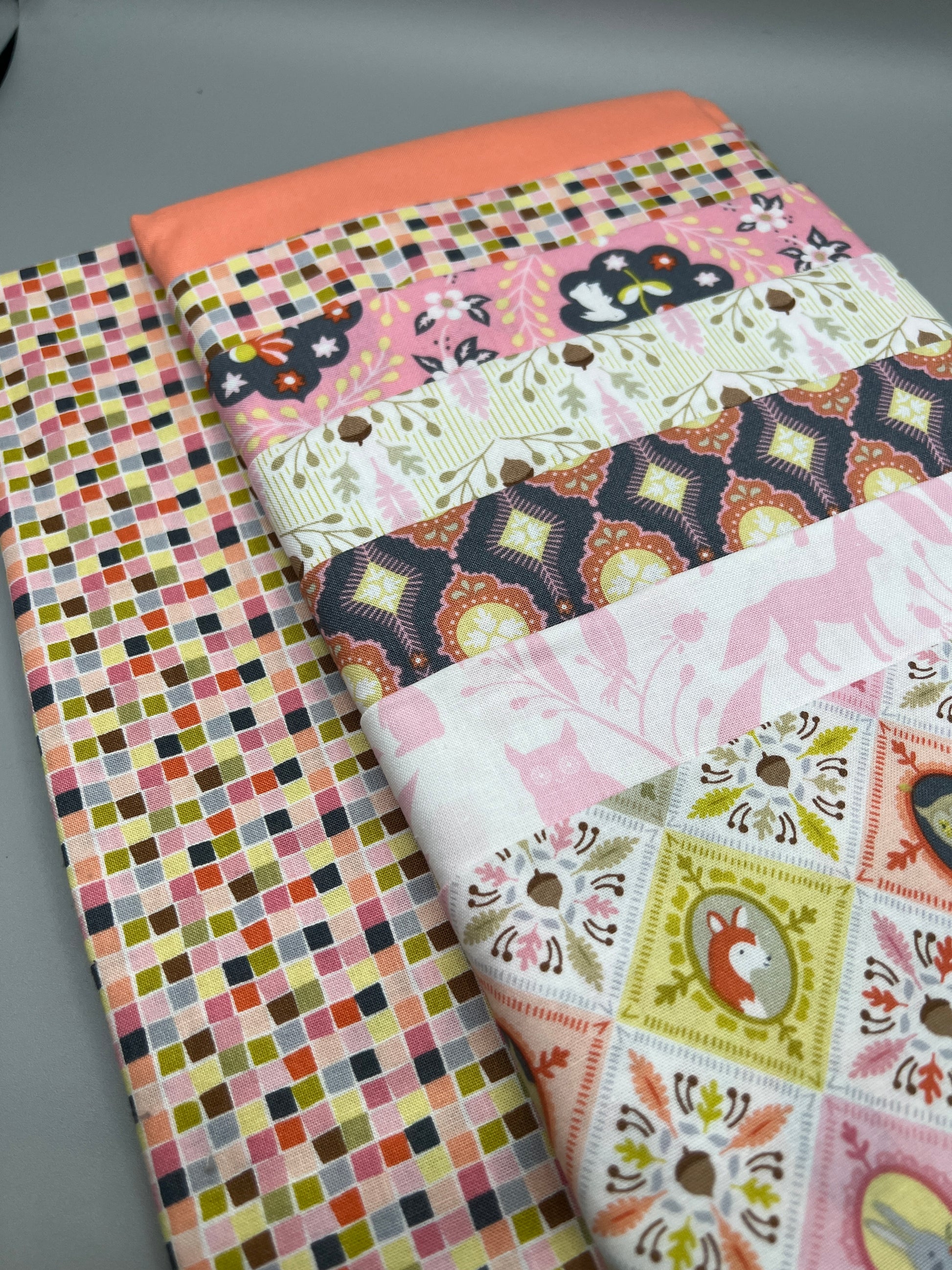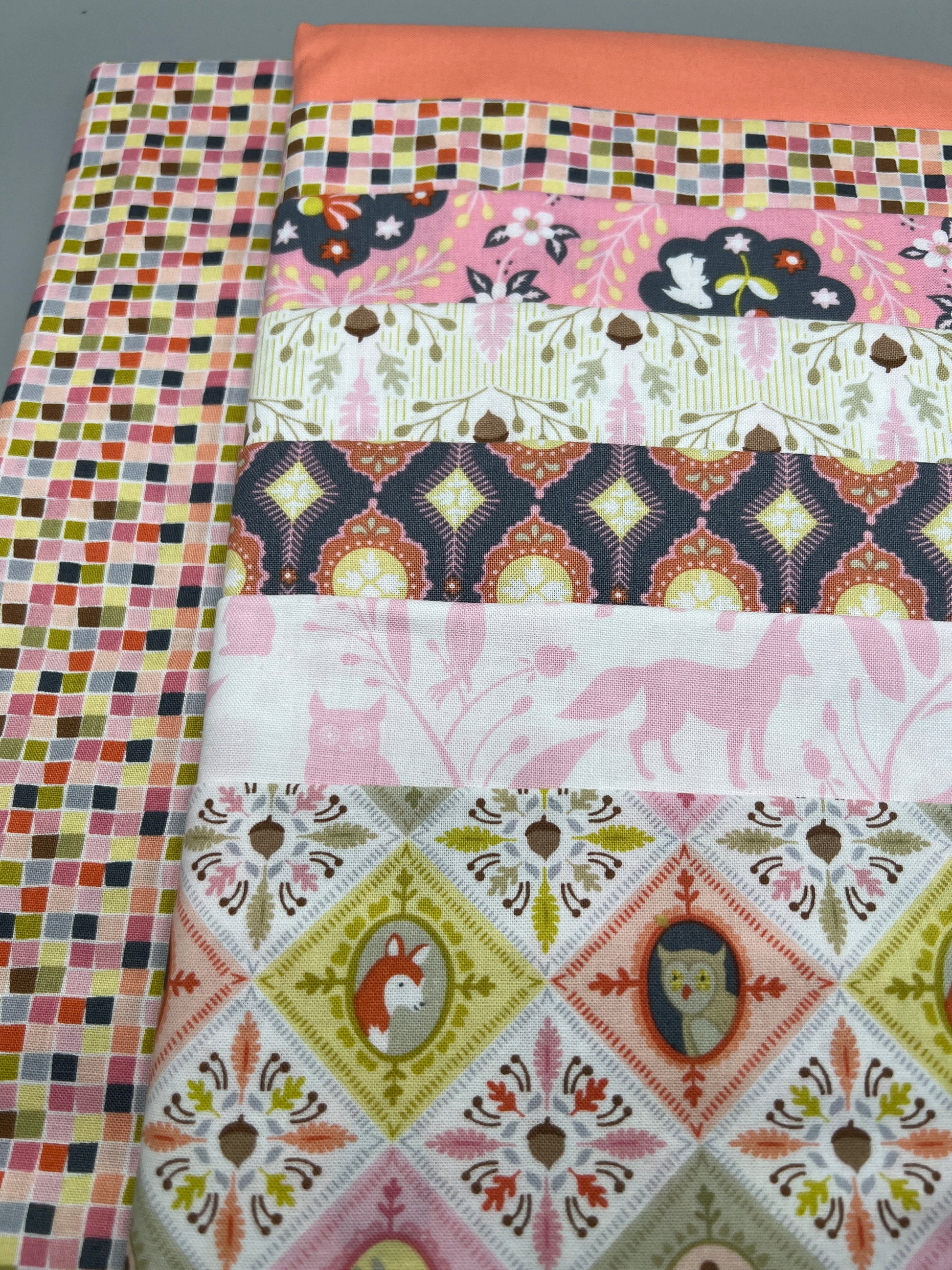 Friendly Forest (Peach) Whimsical Children's Print Fabric Complete Quilt Kits & Pattern - Baby Size / Pattern Included 2 Low stock
