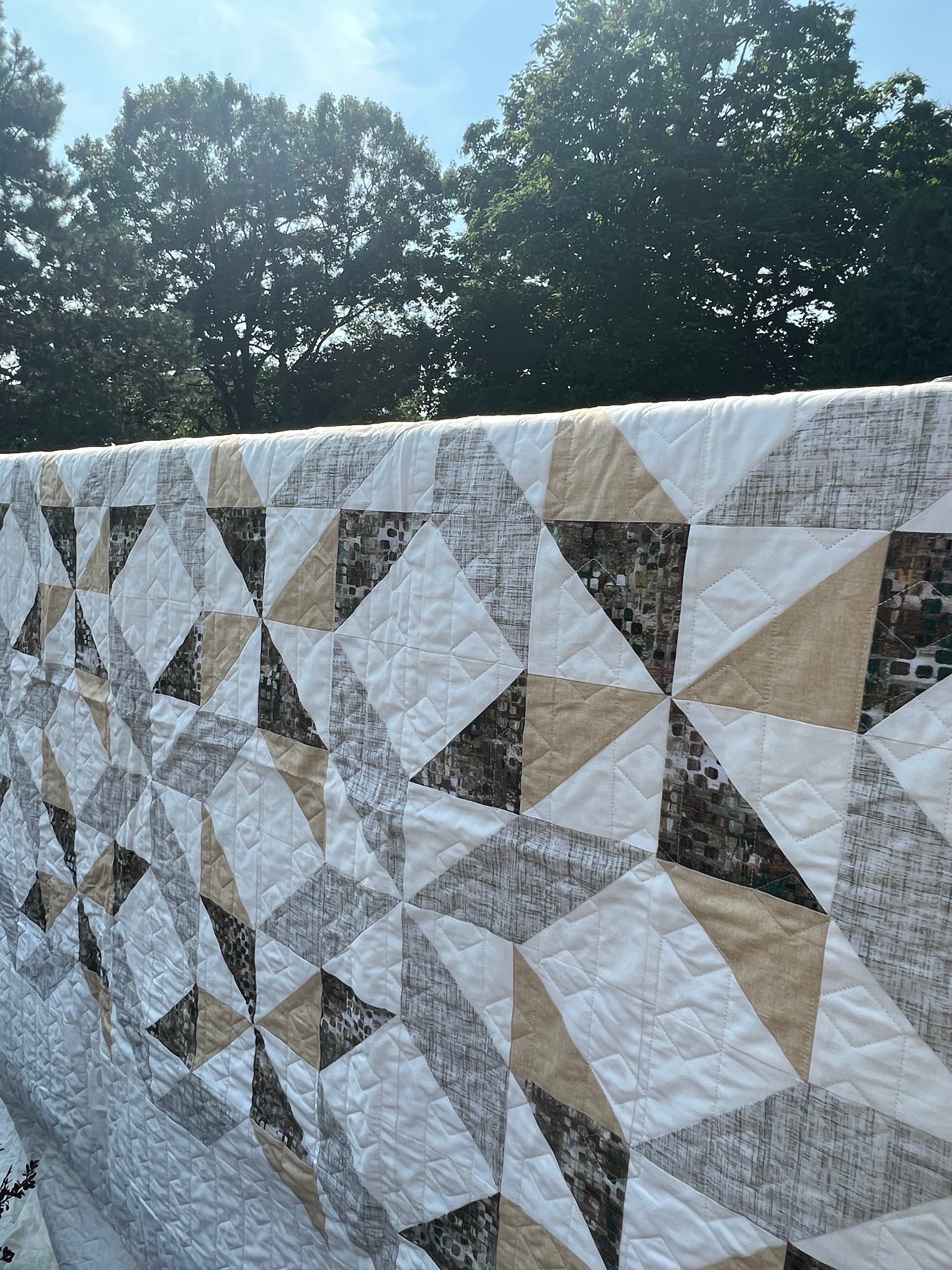Sorella, a king size quilt, is your answer! Simple and clean lines offer a neutral theme. Easy to construct. Just a little touch of masculine. This quilt makes a wonderful wedding or shower gift, it is sure to be admired and greatly appreciated.