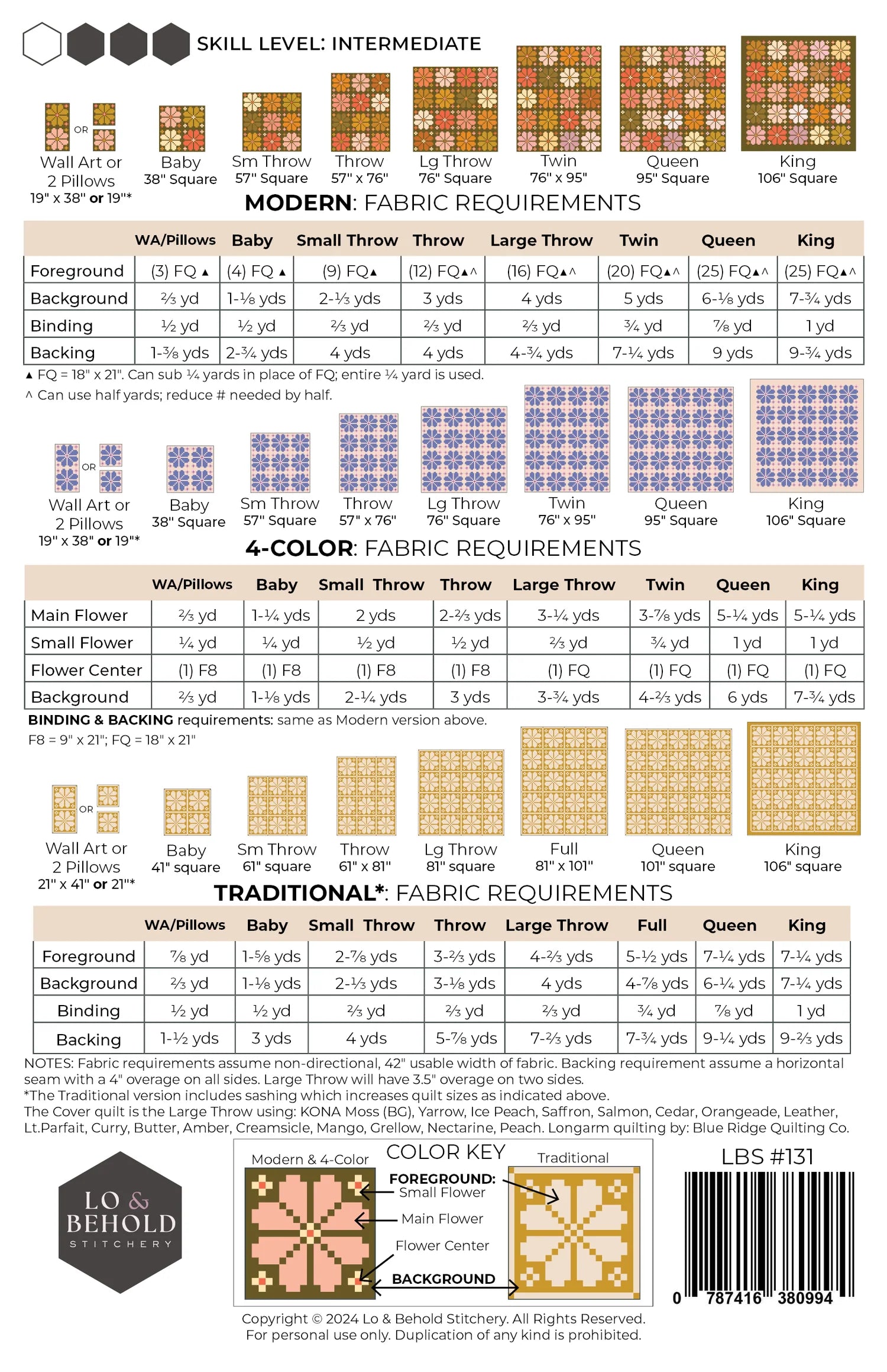 Choose from 9 different sizes ranging from Pillow to King. This pattern also includes 3 colorway options for the quilt sizes, helpful diagrams, thorough instructions, quilting ideas, coloring pages, and a quilt planner to keep your project organized.