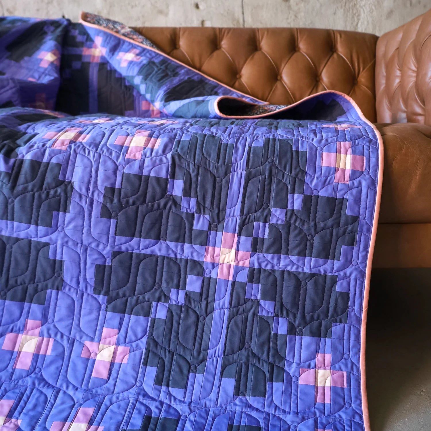 Knitted Blooms is a fun and retro-inspired pattern that uses strip piecing and thoughtful construction to create a bold and modern design. Resembling traditional knitted flowers, Knitted Blooms is a sister pattern to one of Lo & Behold Stitchery’s most beloved patterns, Knitted Star.