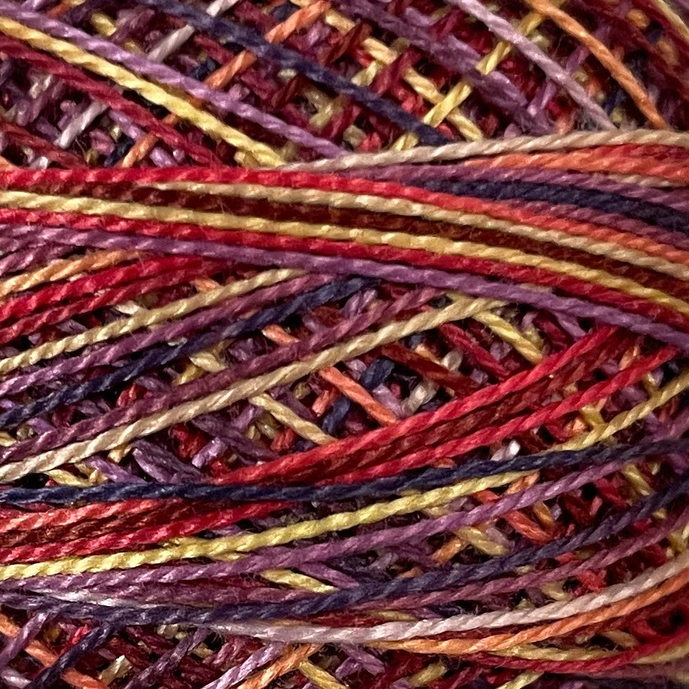 Valdani Variegated Perle Cotton Threads, crafted from mercerized cotton, present a stunning palette of over 170 rich colors in sizes 5, 8, and 12. This multicolored embroidery thread is designed to add dynamic color shifts to your needlework projects, introducing visually engaging patterns. Whether you're into embroidery or cross-stitching, the vibrant and changing hues of these hand-dyed threads are ideal for enhancing handmade creations, bringing a lively and unique dimension to your artistic endeavors.
