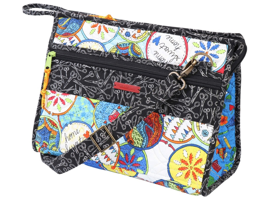 The small Take A Stand tote make a perfect stand for the Tool Case in our Running With Scissors pattern. Just fold the Tool Case over so that the inner pockets are exposed. Place the Tool Case "billboard-style" over the upright tote. You'll love the stability and easy access to all your supplies. The large tote will hold the Running With Scissors Tool Case and/or fabric, tools, and more.