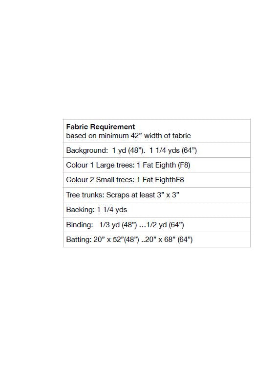 A modern quilt runner inspired by the quiet beauty of evergreen forests. This design blends the timeless elegance of winter pines with a fresh, contemporary look — perfect for holiday décor or year-round charm. Designed with love for modern quilters.